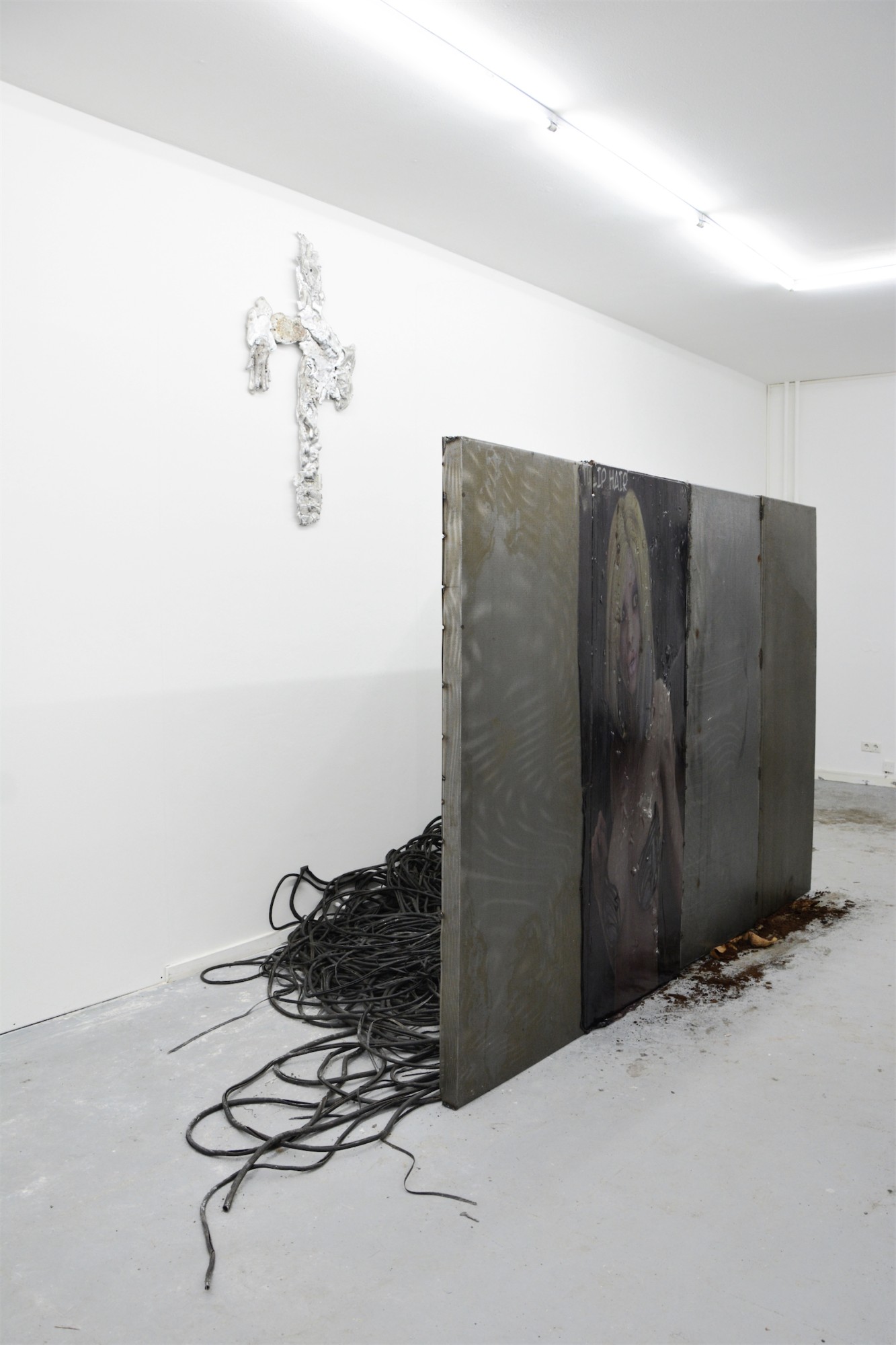The on-site installation by Clémence de La Tour du Pin and Antoine Renard traces a cracked