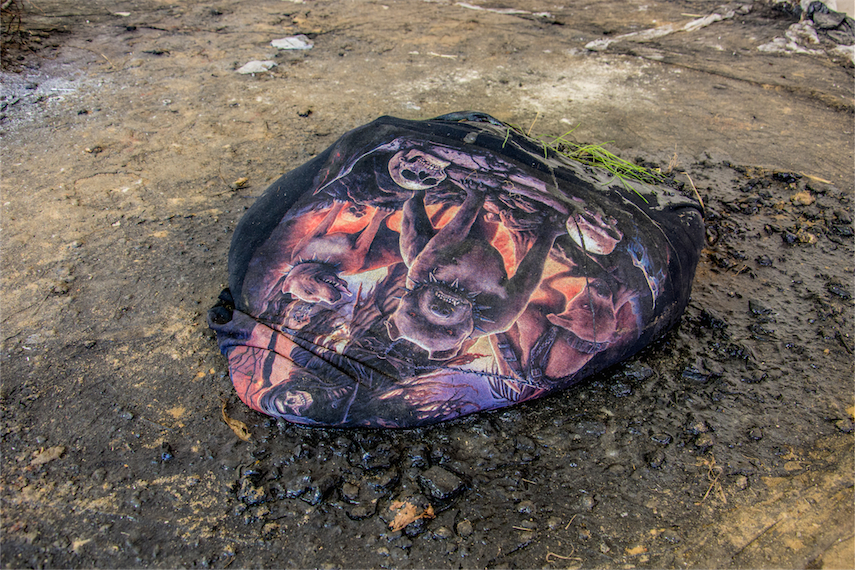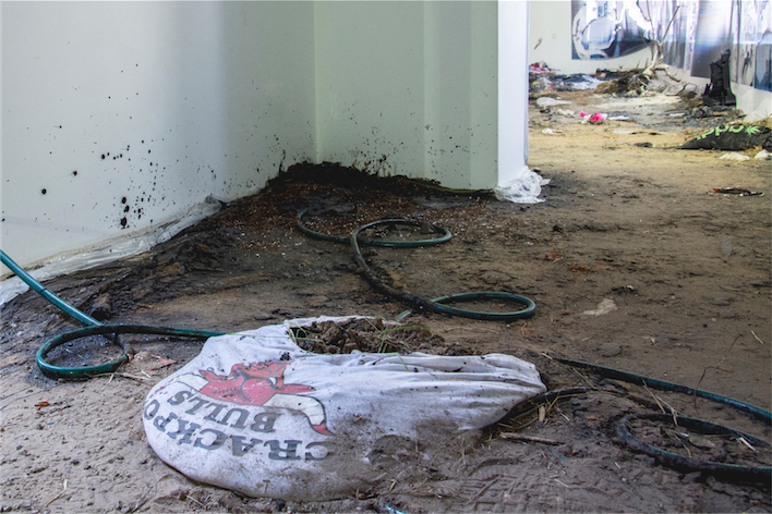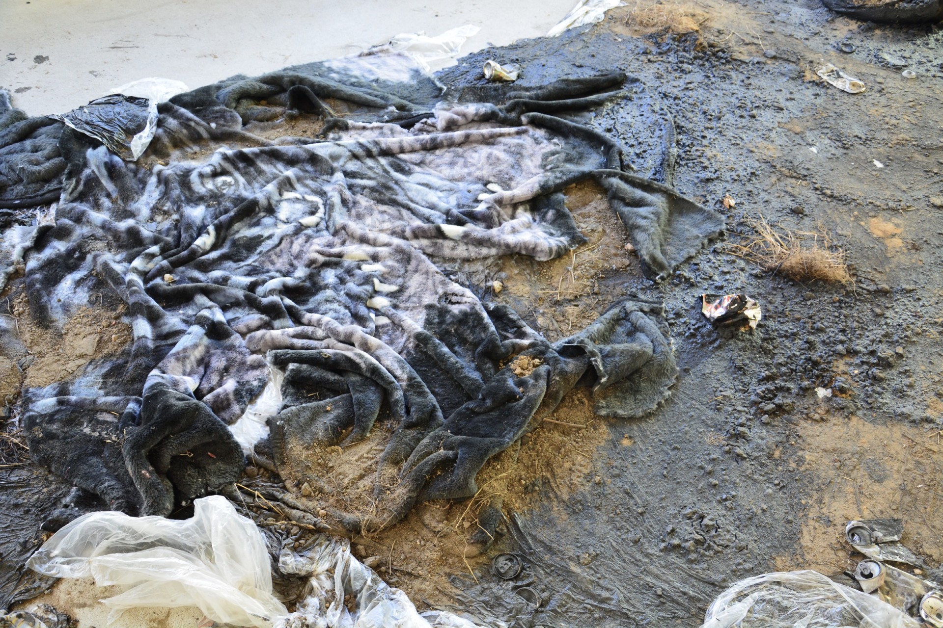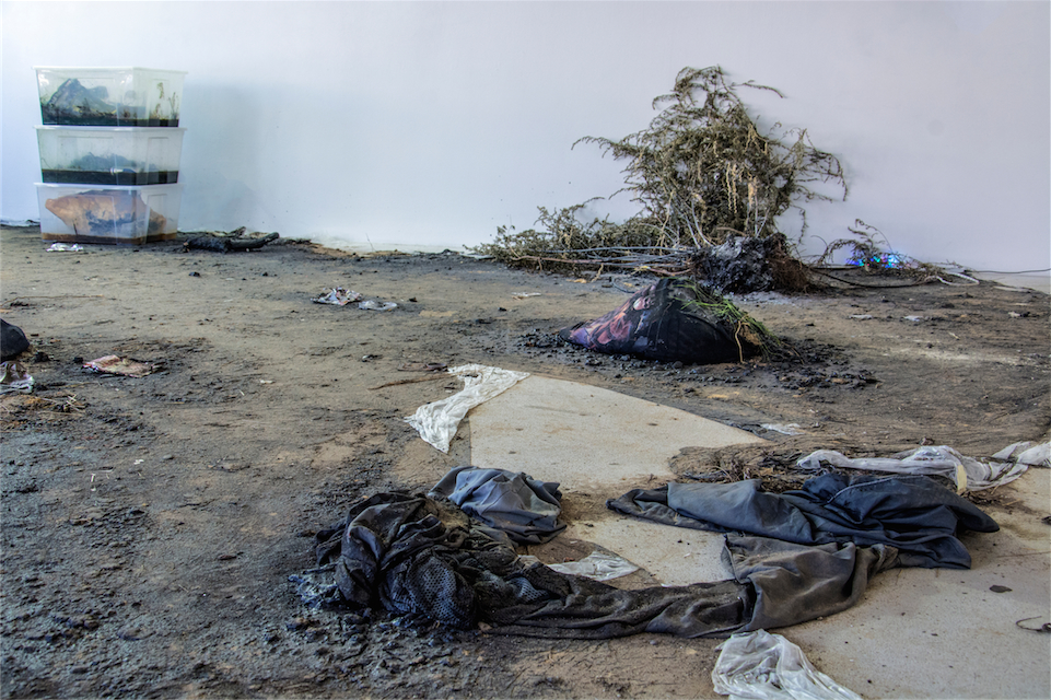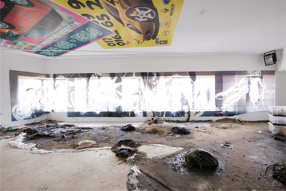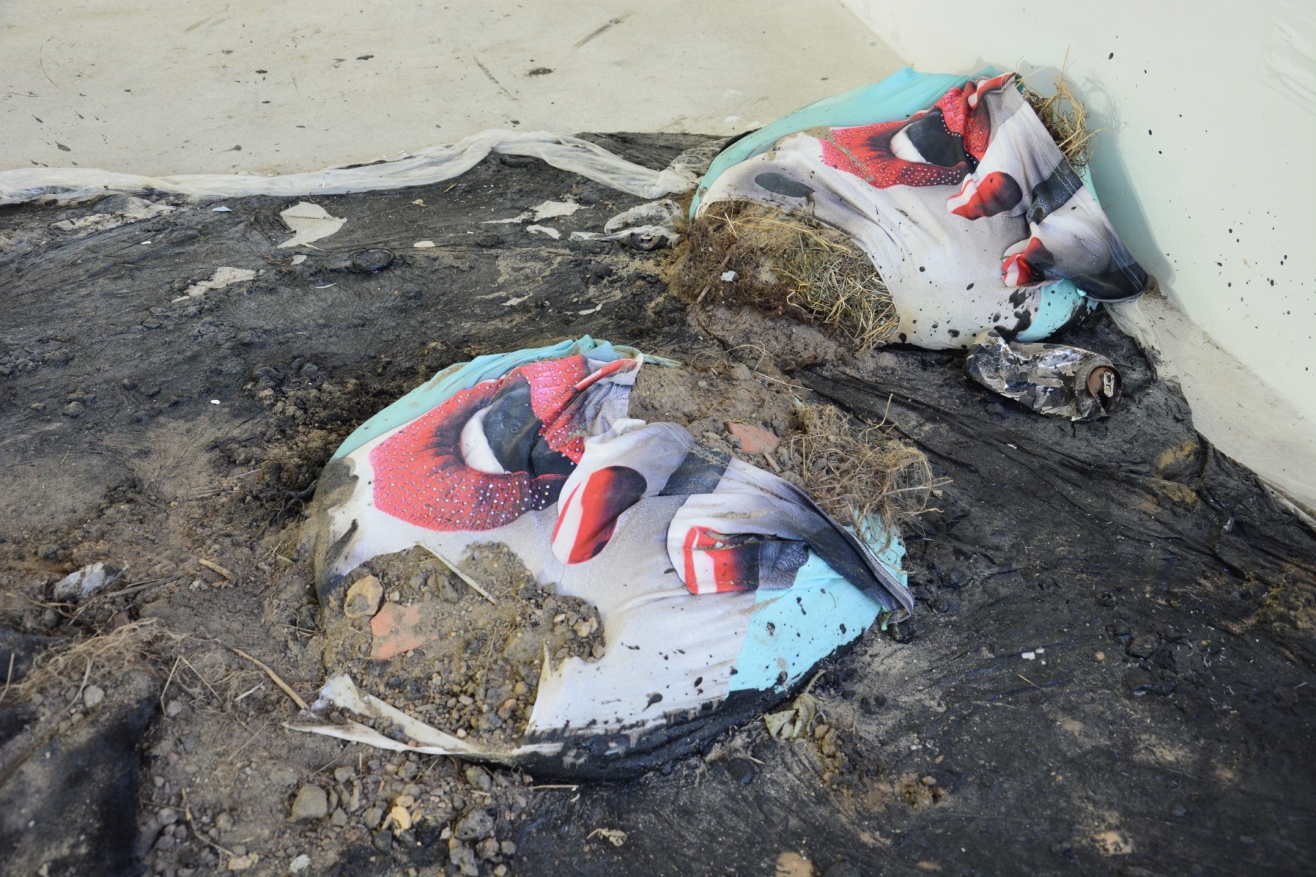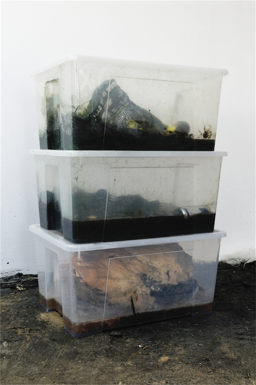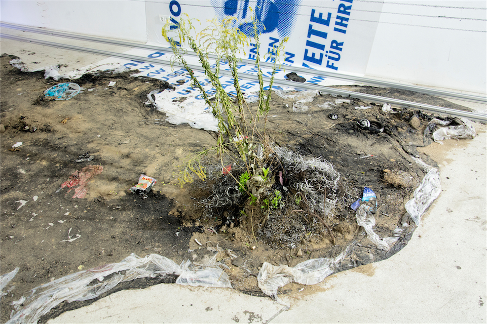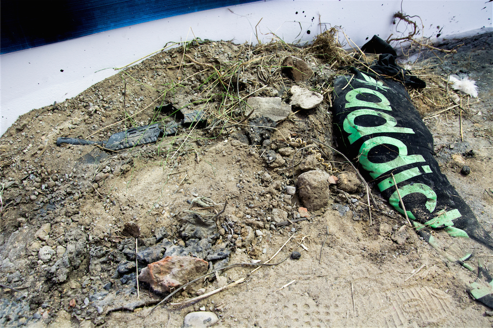 Soil, tar, plants, junk, various objects and materials, variable dimensions. |